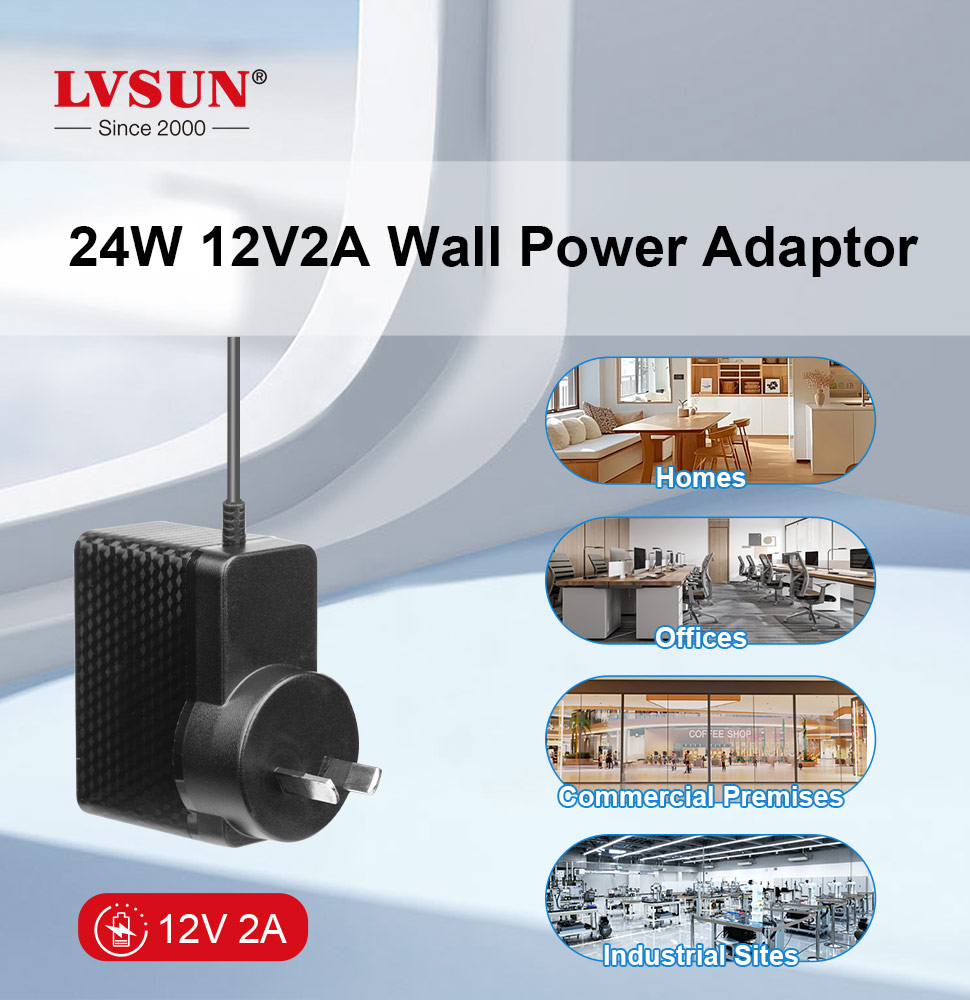 The 24W wall power adapter (output spec: 12V/2A) is a common DC power supply device widely used in a variety of small electronic devices and systems.