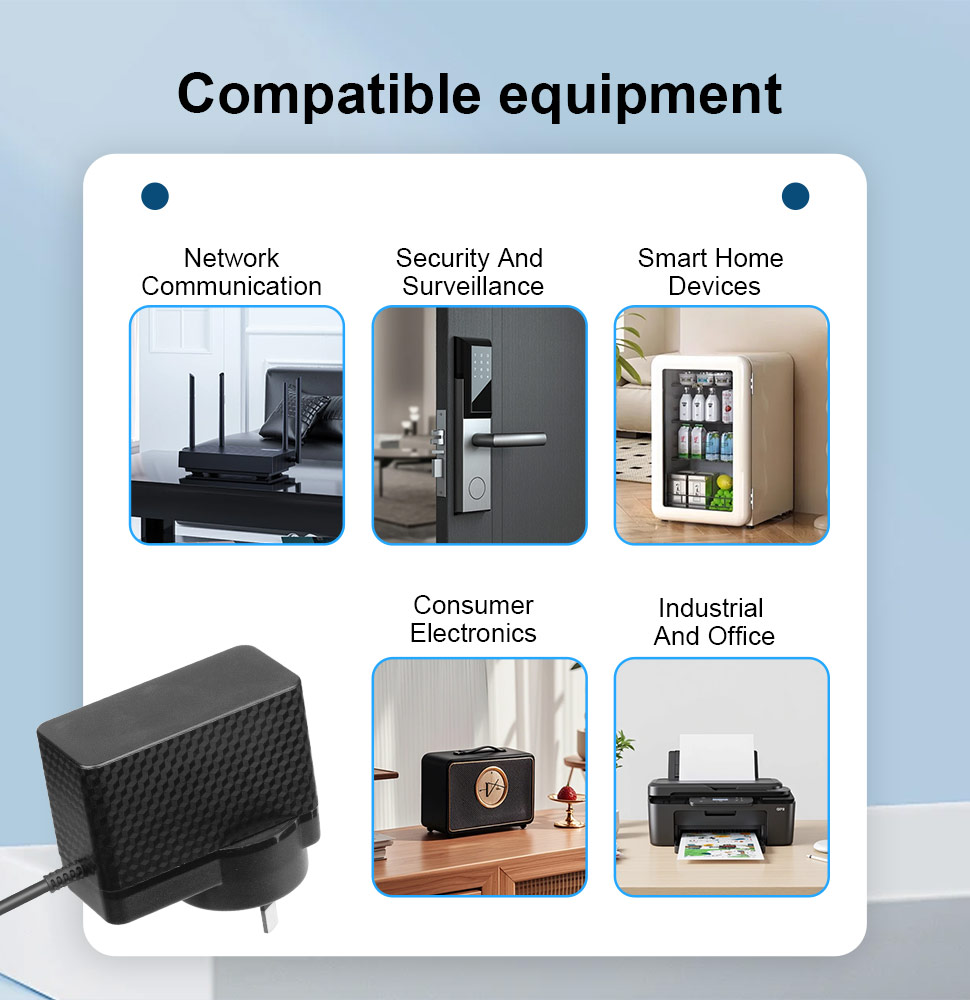 The type of adapter typically features wide input voltage (AC 100–240V) and multiple safety protections (overvoltage, overcurrent, short-circuit protection), enabling it to adapt to global power grid environments. It is widely used in homes, offices, commercial premises, and industrial sites.